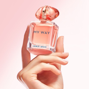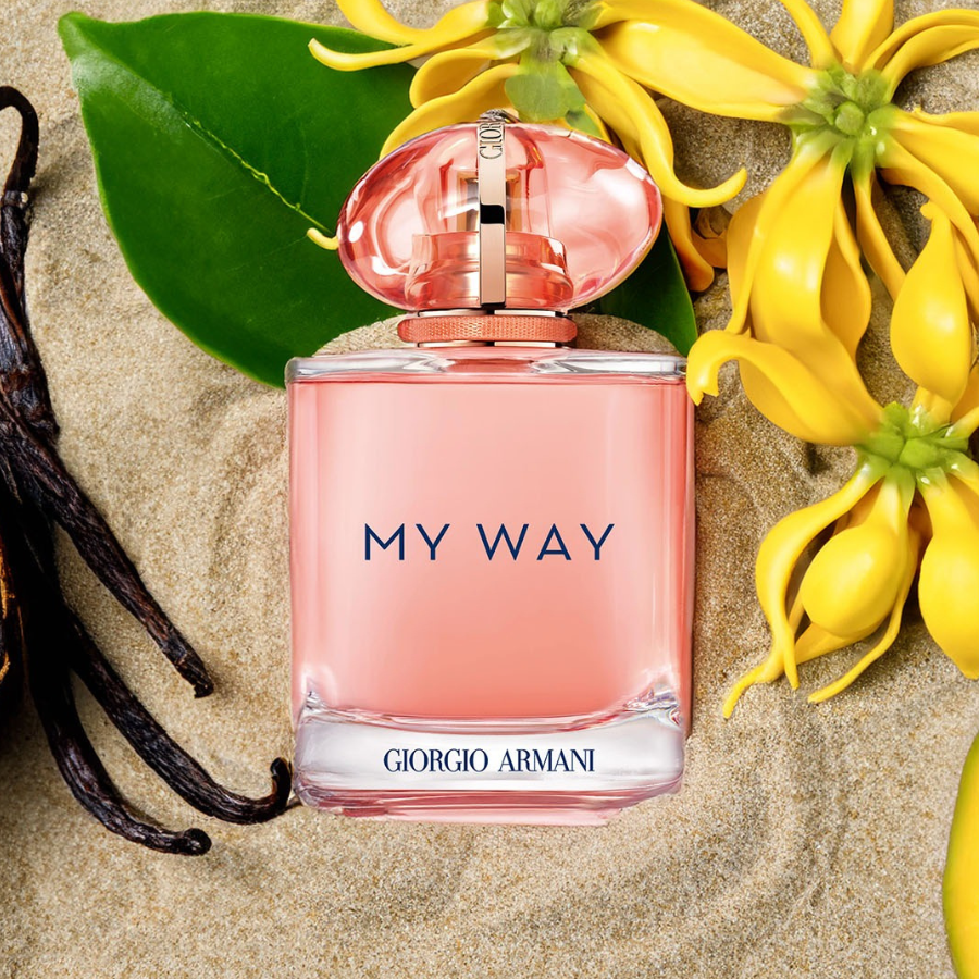 Armani My Way Ylang vẫn giữ form chai đặc trưng của dòng My Way, nhưng nổi bật với sắc hồng san hô pha cam ánh sáng, tạo cảm giác trẻ trung và đầy năng lượng. Nắp chai được làm bằng chất liệu trong suốt uốn lượn như đá quý, kết hợp cùng chi tiết viền vàng và chữ Giorgio Armani tạo điểm nhấn sang trọng nhưng không quá cầu kỳ, đúng tinh thần thời trang Ý thanh lịch.