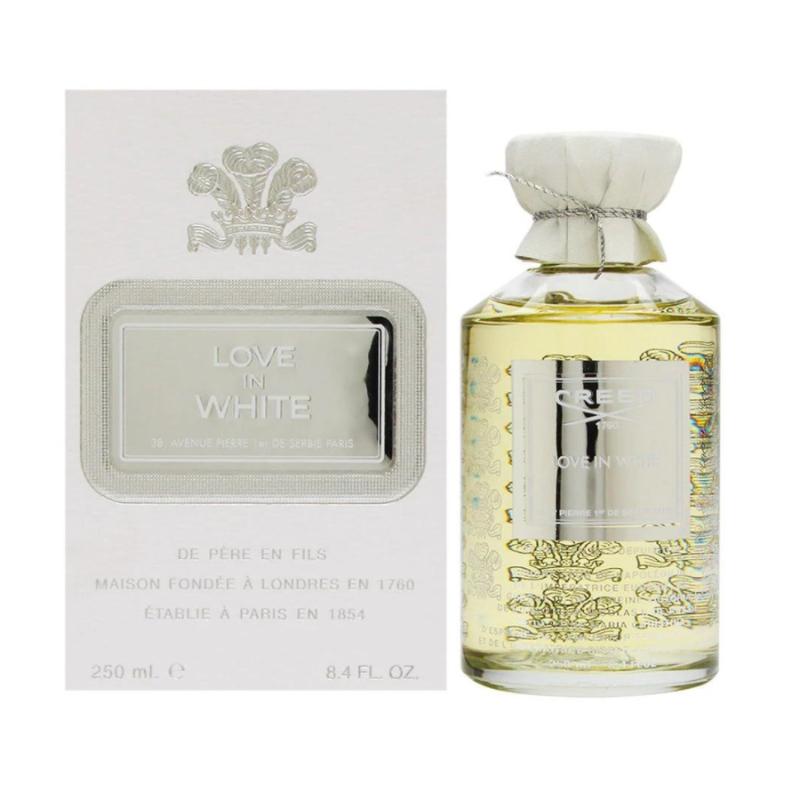 Nước hoa được tinh chế bao gồm tinh chất cao quý của hoa hồng Bulgary, hoa diên vĩ, và mộc lan. Creed Love in White sẽ đón chào bạn bằng một hương thơm của quả cam, đến từ miền Nam nước Tây Ban nha. Hương thơm của hoa nhài Ý, hoa thủy tiên vùng Riviera của Pháp, gạo, hoa diên vĩ Ai Cập và hoa mộc lan của Guatemala kết hợp với nhau để tạo nên lớp hương giữa. Lớp hương cuối mỏng manh và gợi cảm được tạo thành từ hỗn hợp ấm áp của vani, gỗ đàn hương và long diên hương.
