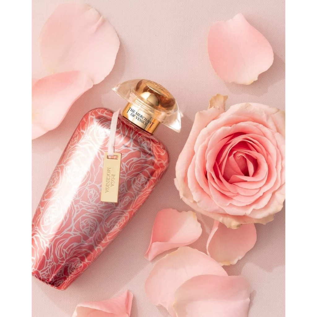 + The Merchant of Venice Rosa Moceniga EDP sử dụng nốt hương chính là Hoa hồng Mocenigo, một loài hoa quý hiếm, có nguồn gốc từ Trung Hoa. Suốt 200 năm qua, một khu vườn hoa hồng độc nhất vô nhị đã nở rộ ở nơi đây, với những bông hoa đầu tiên được mang đến từ Pháp bởi Lucia Mocenigo. Lucia mang được loài hoa quý hiếm này về vườn hoa của mình, nhờ vào tình bạn thân thiết giữa cô và Joshephine Bonaparte – một người sưu tập hoa hồng quý hiếm. Hoa được đặc trưng bởi màu hồng phấn, mượt như nhung. Loài hoa này mang một mùi hương trái cây mạnh mẽ, một mùi hương nữ tính – biểu hiện tự nhiên hấp dẫn nhất – làm nổi bật vẻ đẹp của loài hoa hồng này. Hoa hồng Mocenigo là một chú kỳ lân mang trong mình một bí ẩn mà chưa ai có thể khám phá được hết.
